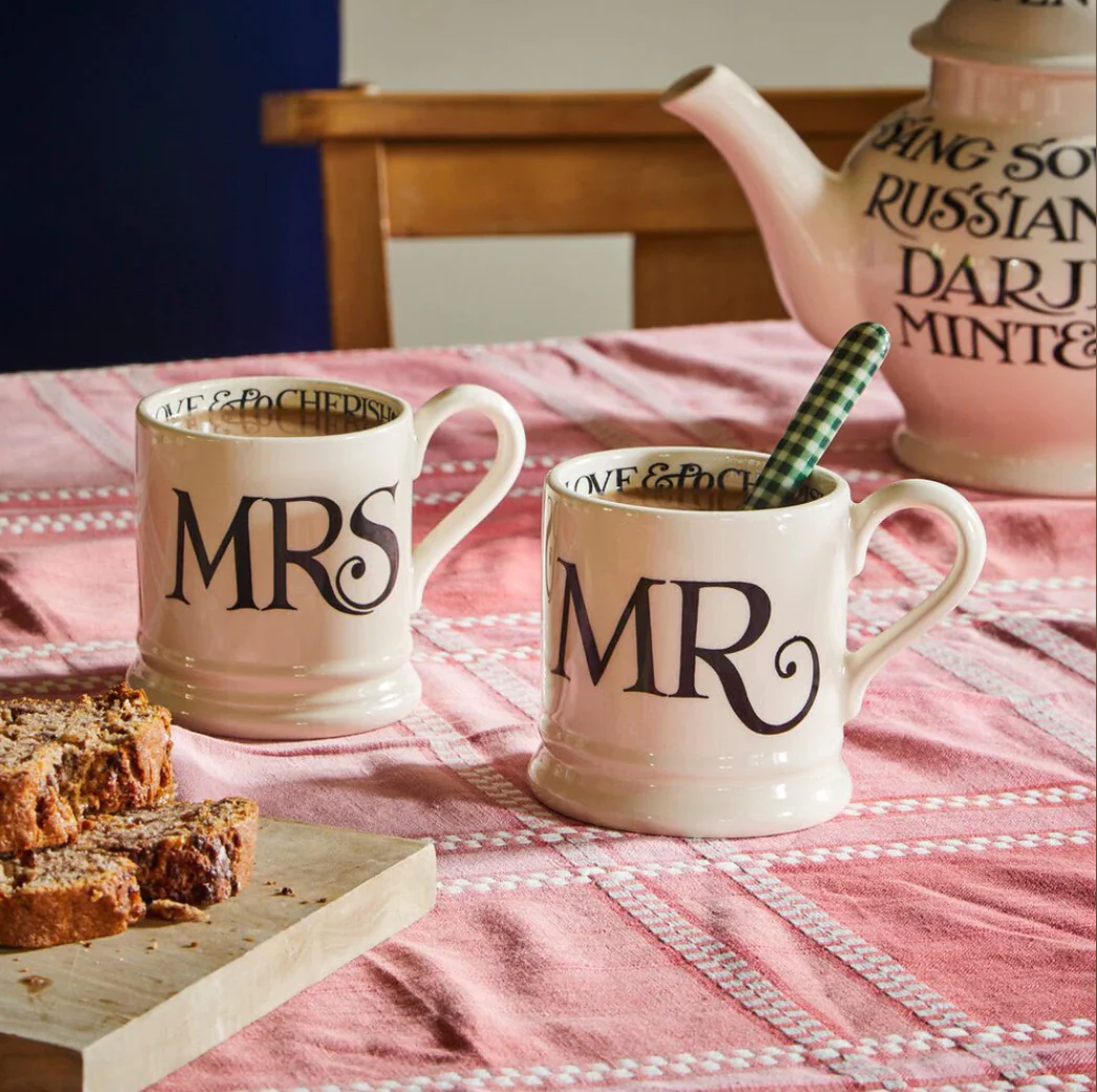 Black Toast works beautifully in both traditional and modern kitchens, and this set of Mrs and Mrs mugs would make a great wedding or anniversary present.