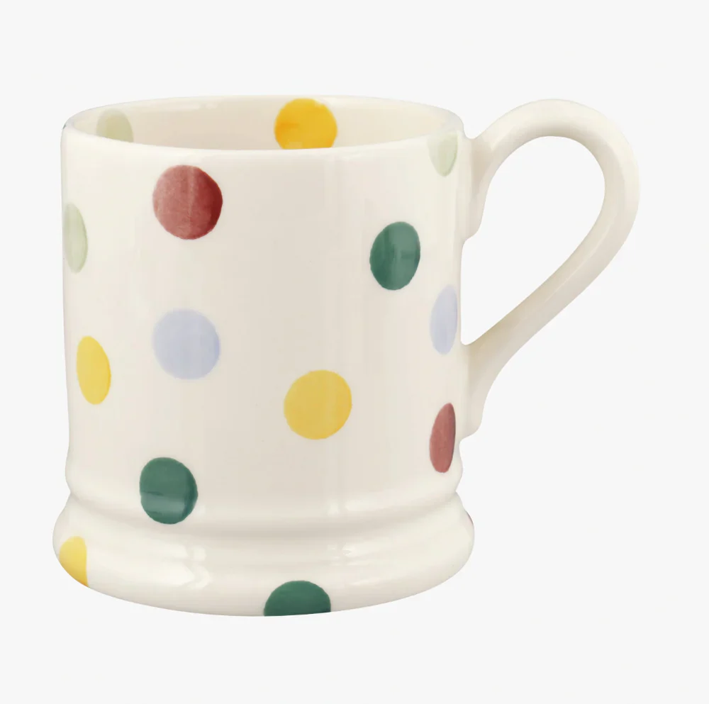 This Polka Dot 1/2 Pint Mug is a best-selling mug and is in Emma Bridgeweaters most famous pattern, Polka Dot. It works really well as a present and is essential for making every house feel like home! A lovely gift for friends or for you!